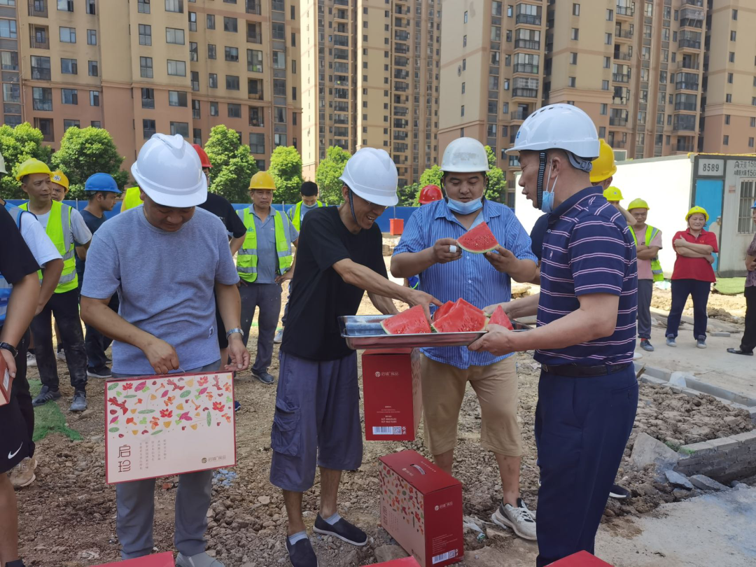 集團(tuán)黨委班子成員分別走訪慰問了清江錦城項(xiàng)目、清能正榮府項(xiàng)目、清能龍湖天曜項(xiàng)目以及荊州學(xué)府花園項(xiàng)目,實(shí)地察看了項(xiàng)目施工現(xiàn)場,詢問了解了項(xiàng)目安全生產(chǎn)、勞動(dòng)保護(hù)及防暑降溫工作情況,積極協(xié)調(diào)解決職工暑期生產(chǎn)生活方面的困難和問題,為項(xiàng)目一線職工送去西瓜、礦泉水、清涼禮包等防暑降溫物品,叮囑他們?cè)谧龊帽韭毠ぷ鞯耐瑫r(shí),注意高溫酷暑下的自我保護(hù),把健康和安全生產(chǎn)放在第一位,以良好的精神狀態(tài)投入到工作中。
