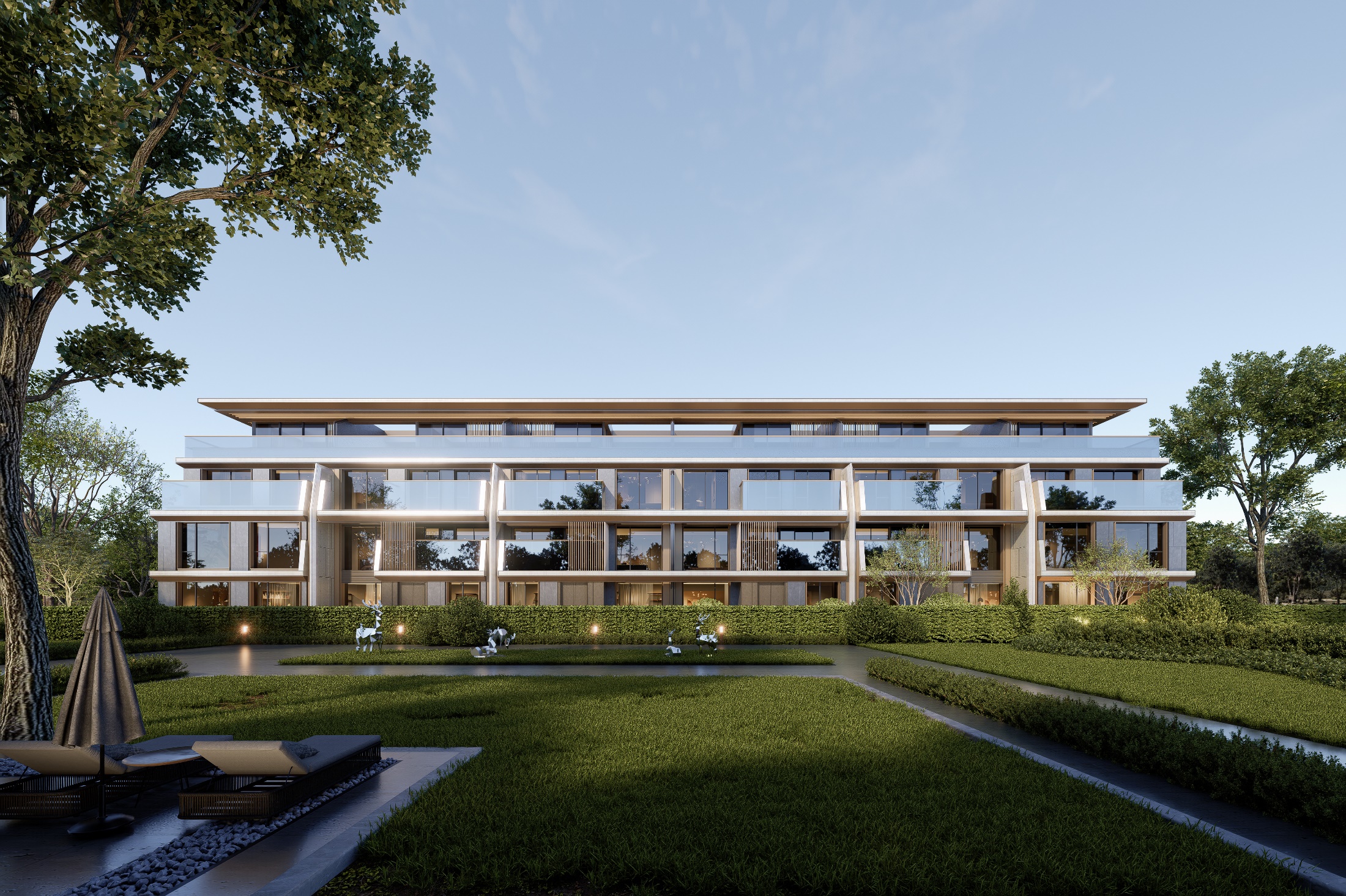 上海天譽原墅項目位于上海市奉賢區奉賢新城04單元,處于奉賢區核心區域,項目東側為遠東路,北依運河北路,南側為浦南運河,緊鄰奉賢區區政府、區電視臺、區檔案館等公共配套。項目總占地25690平方米,容積率1.2,項目總建筑面積60769平米,其中計容建筑面積30828平米,規劃建設9棟聯排別墅,3棟小高層,配套建設900平米業主會所。項目立面采用“鉆石切角”的設計手法,以框架感和構成感勾勒出別具一格的城市天際線,景觀設計以度假花園為主要目標,營造靜謐風雅的生活格調,項目立于攬河觀景首排,業主未來可享受極佳的自然生態資源。項目距離S4高速南橋出入口1公里,距離地鐵5號線望園路站、環城東路站3公里,交通十分便利。