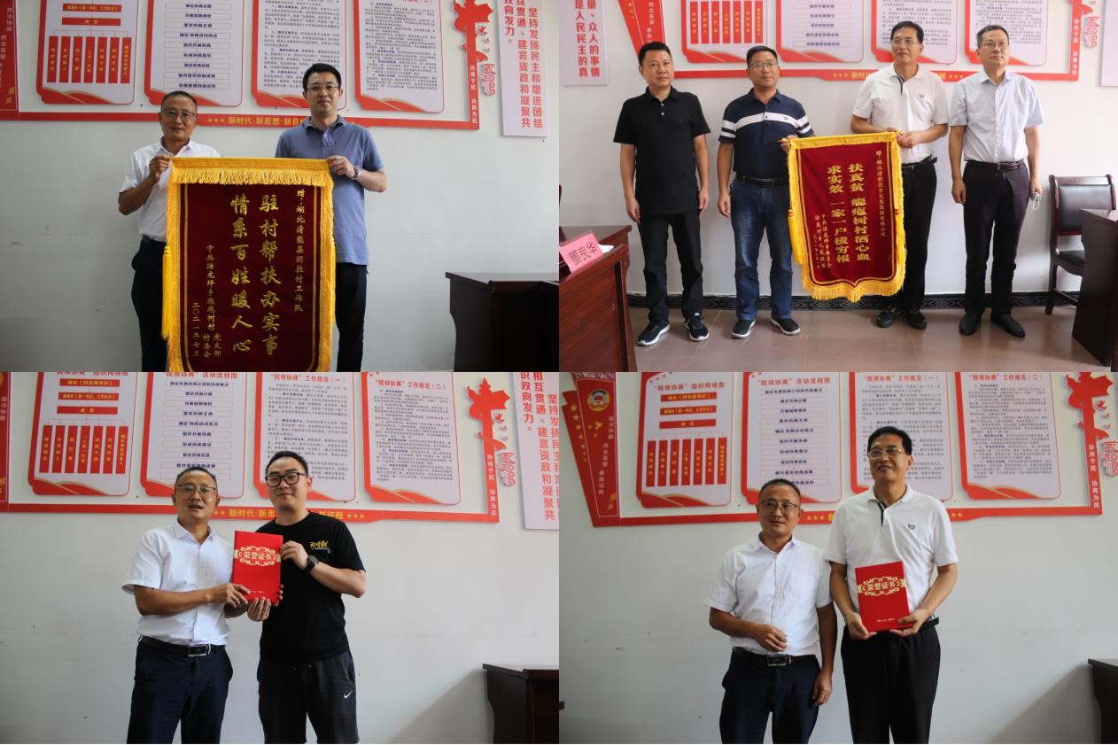 圖:鄉(xiāng)、村兩委向清能集團(tuán)授予錦旗、頒發(fā)榮譽(yù)證書(shū)