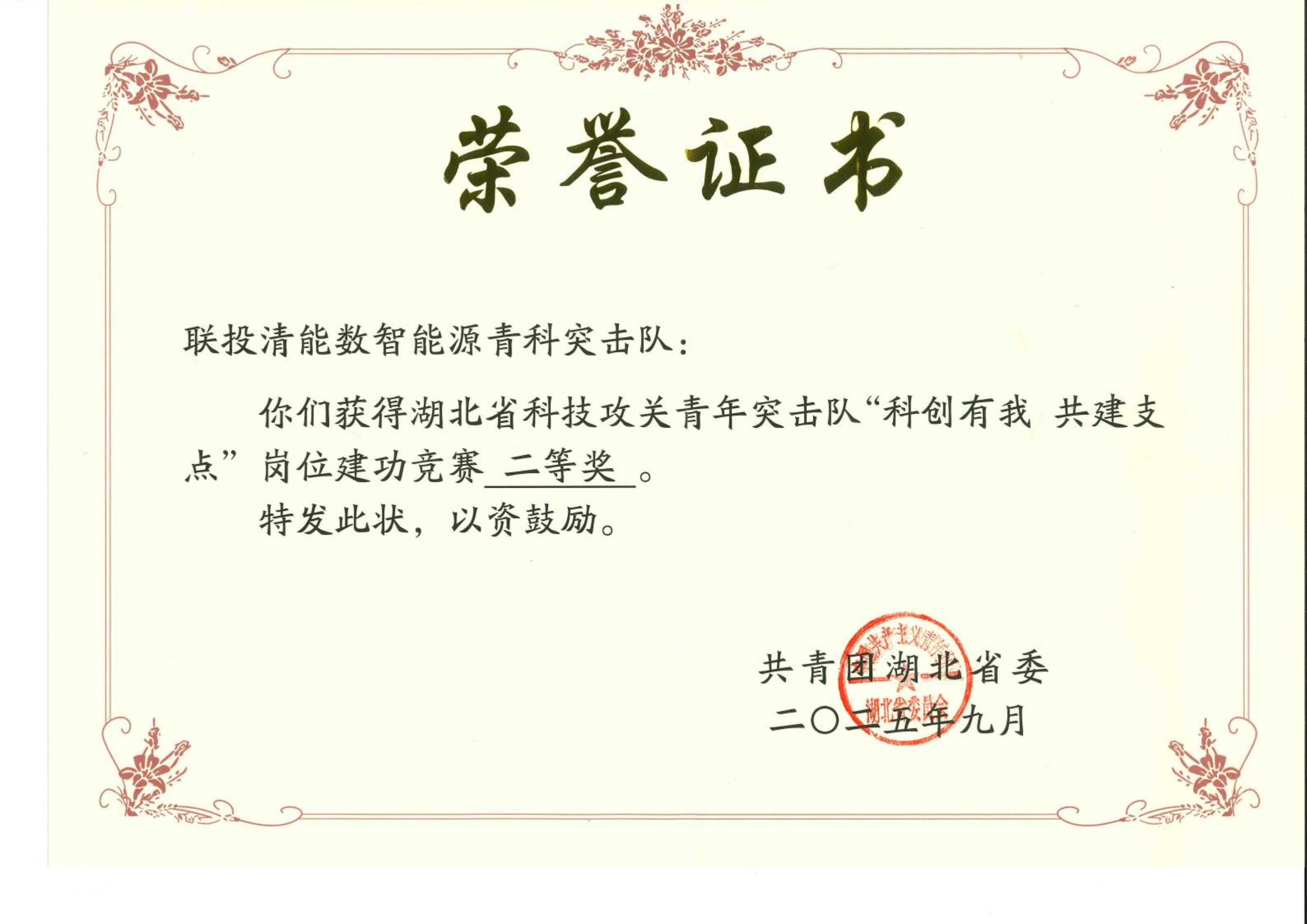湖北省科技攻關青年突擊隊“科創有我 共建支點”崗位建功競賽二等獎